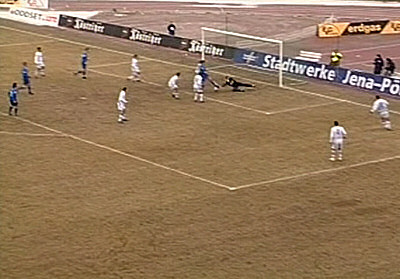 Kurz nach der Pause trifft Torjäger Hähnge nach schöner Vorarbeit von Schlitte zum 2:1.